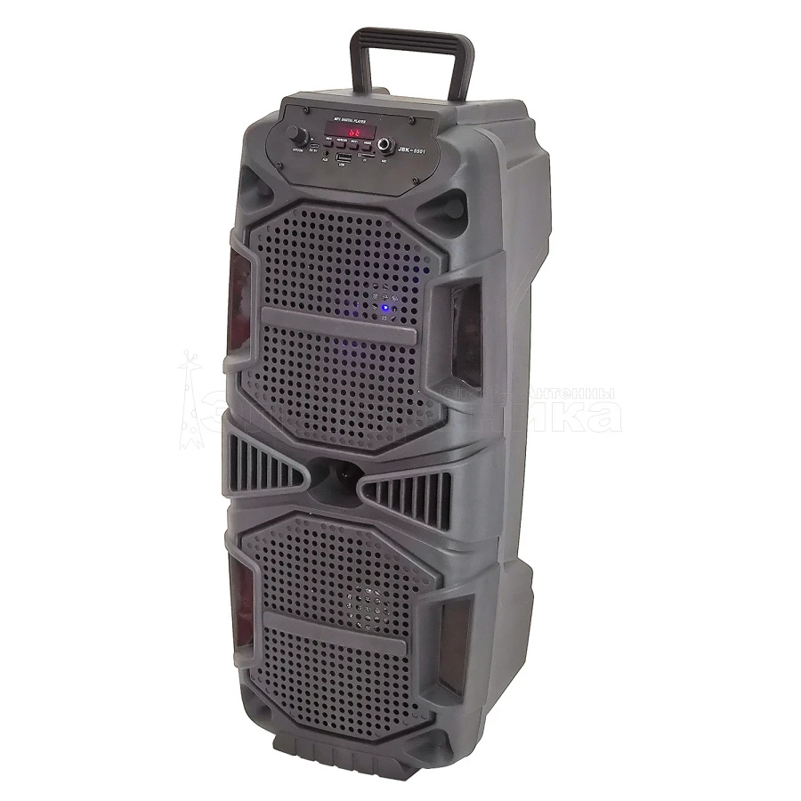 Гнездо для микрофона: 6.3 мм Bluetooth: есть FM: есть USB: есть AUX: есть TF: есть Дисплей: есть Встроенный аккумулятор: 2.4 А Встроенный микрофон: нет Мощность (MAX): 10 Вт Цвет: черный Размер: 560*220*220 мм Материал: пластик