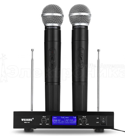 Параметры: Частотный диапазон радиочастотного носителя: 229.7 и 254.6 MHz Рабочий диапазон: 100 м (приблизительно 300 футов) Частотная характеристика аудио: 50-15 кГц Мощность передатчика: 8.5 мВт Режим конвертирования: FM Наибольшее вымывание: +/- 75 кГц Мощность приёмника: 1 Вт Ч Чувствительность: 30 дБ / uV Ложная скорость: более 70 дБ. Скорость связи: более 70 дБ. Аудиовыход: более 25 мВ. Диапазон рабочих температур: -20-50 град. С (-4-122 град. ф); Выходы: 6.3мм (MIX OUT) Внешний источник питания 13.6V/1A Питание микрофонов 9V В комплекте: радиомикрофон — 2 шт., база VHF, 2 элемента питания блок питания кабель 6.3-6.3мм инструкция на Английском