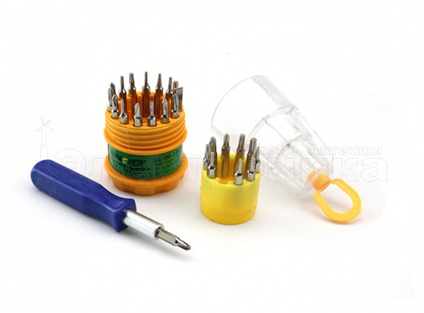 26 различных насадок Быстрая и удобная смена насадок Пластиковая ручка длиной 8см Удобный футляр для хранения набора
